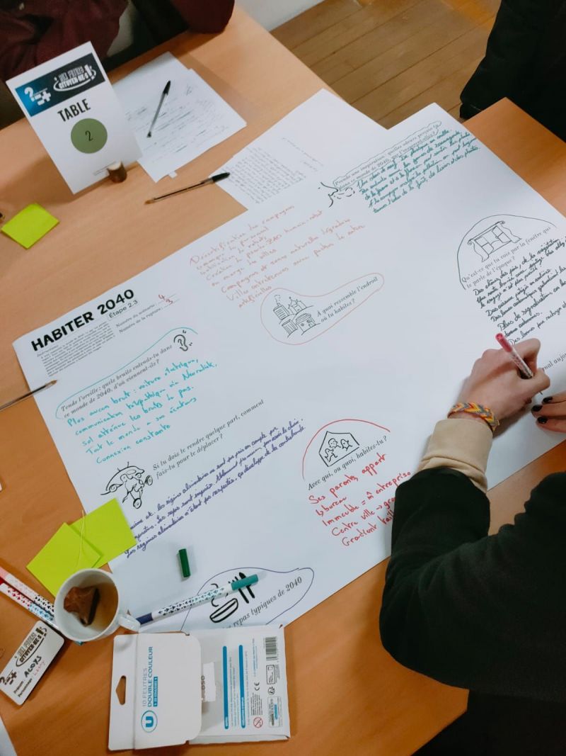 From September 2022 to September 2023, we developed a project of creative foresight with the French NGO Les Petits Débrouillards, on the future of (popular) education. We created for them - and with them - a specific method, a one day exercise called “Aux Futurs citoyens”, and organized a two-day training in Paris with 20 employees of the Petits Débrouillards, to introduce them to collective creative foresight and teach them to facilitate this kind of exercise in each of their regional office.